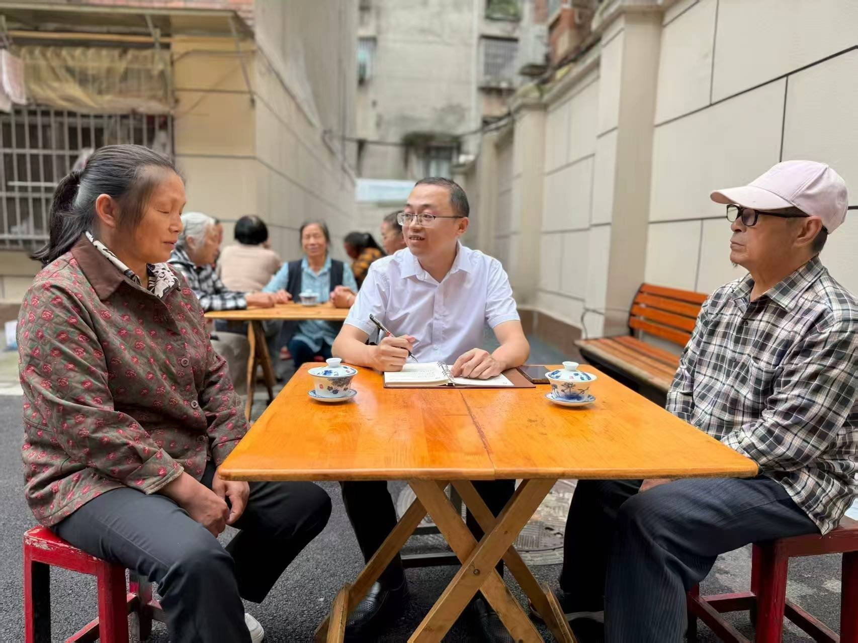“中学路摆摊的太多,过路骑车都打挤。”“西门市场那些电线老化得太厉害,不安全……”居民韩女士端起青花盖碗,轻刮茶沫,向对面的“茶倌”——资溪街道纪工委书记徐一盛聊起家常。这样的场景,是徐一盛的工作日常。他习惯于走进街头巷尾,坐下来,喝一碗茶,听一席话。盖碗中盛的不仅是茶,更是老百姓沉甸甸的真心。